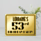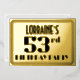 The front of this stylish and 1920s/1930s era style inspired fifty-third birthday celebration/party foil invitation card design features a customisable name, an art deco look inspired number “53rd”, the message “BIRTHDAY PARTY”, and a border pattern consisting of lines. The back features personalised details about the event, such as the date, time, place/venue, and any other information that may be relevant. Stylish, elegant, customised invitations like these might be used to invite attendees to a birthday party/gathering being held in celebration of somebody’s 53rd birthday. [~Z0000606]
