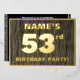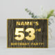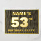 The front of this bold fifty-third birthday celebration foil invitation card features an editable name, a large number “53rd”, the message “BIRTHDAY PARTY!”, and a border, all in foil. The background of the front features a rustic, yet elegant, faux wood grain appearance inspired pattern. The back features personalised details about the event, such as the date, time, place, and any other information that may be important. Customised invitations like these might be used to invite attendees/guests to a birthday gathering being held to celebrate somebody’s 53rd birthday. [~Z0000598]