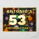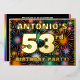 The front of this vibrant and joyful fifty-third birthday party foil invitation card design features a custom name, a large number “53rd”, the message “BIRTHDAY PARTY!”, and a border. The background of the front has a bold, multicolored pattern that resembles bursting celebratory fireworks. The back features personalised details about the event, such as the date, time, place/venue, and any other information that may be useful. Editable invitations like these might be a fun way to invite guests to a birthday party/gathering being held to celebrate somebody’s 53rd birthday. [~Z0000602]