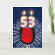 A birthday glass of wine with candles. The candles are made up of the number 53, for an 53rd birthday. Fireworks are exploding in the background. A birthday card suitable for anybody, male or female.