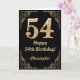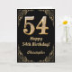 54th Birthday Black and Gold Glitter Frame Card
