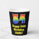 This fun and exciting birthday paper cup design features a large number “54” having a rainbow spectrum gradient inspired pattern. It also features the message “Happy 54th Birthday,”, and a customisable name. It also has a black-coloured background. Vibrant, colourful paper cups like this might be fun to use at a birthday party being held in celebration of somebody’s fifty fourth birthday. [~Z0000537]