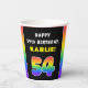 This bold and upbeat birthday-themed paper cup design features the number “54“ having a vibrant multicolored rainbow spectrum inspired gradient pattern, along with the message “HAPPY 54th BIRTHDAY,”, and a personalised recipient name. Joyful paper cups like this might be fun to use at a party being held for somebody who is celebrating their fifty fourth birthday. [~Z0000639]