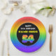 54th Birthday: Colourful Rainbow # 54, Custom Name Paper Plate