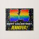 This cheerful and upbeat birthday-themed jigsaw puzzle design features a large number “54” having a multicolored rainbow spectrum inspired gradient pattern. It also features the message “HAPPY 54th BIRTHDAY,”, and a customisable recipient name. The background has a bold, colourful stars pattern. A fun, personalised birthday puzzle like this might be a fun way to send birthday wishes to somebody who is celebrating their fifty-fourth birthday. [~Z0000607]