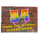 This fun and vibrant birthday giftbag design, inspired by street art, features a large number "54" having a rainbow spectrum gradient inspired pattern. It also features the message "Happy 54th Birthday,", and a personalised name. The background features a brick wall inspired pattern. A colourful gift bag like this might be used when giving a gift or present in honour of somebody’s 54th birthday. [~Z0000522]