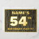 The front of this bold fifty-fourth birthday celebration/party foil invitation card features an editable name, a large number “54th”, the message “BIRTHDAY PARTY!”, and a border, all in foil. The background of the front features a rustic, yet elegant, faux wood grain appearance inspired pattern. The back features personalised details about the event, such as the date, time, location/venue, and any other useful information. Editable invitations like these might be used to invite attendees/guests to a birthday party being held to celebrate somebody’s 54th birthday. [~Z0000598]