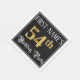 This elegant and fancy birthday themed paper napkin design features a personalized name and the message “54th Birthday Party”. The large number “54th” has a faux/imitation gold-inspired coloring pattern, the words “Birthday Party” are in opulent script-style text, and the background is colored black by default (although it can be customized). Opulent, luxurious paper napkins like this might be useful at a birthday party being held to honor somebody’s fifty fourth birthday. [~Z0000565]