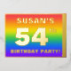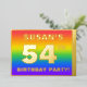 The front of this eye-catching and joyful fifty-fourth birthday celebration foil invitation card design features a custom name, a large number “54th”, the message “BIRTHDAY PARTY!”, and a border. The background of the front features an upbeat, colourful, rainbow spectrum inspired gradient pattern. The back features personalised details about the event, such as the date, time, location, and any other useful information. Personalised invitations like these might be a fun way to invite guests/attendees to a birthday party being held to celebrate somebody’s 54th birthday. [~Z0000599]