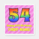 This happy and upbeat 54th birthday-themed paper napkin design features a large number "54" having a colourful pattern inspired by the look of a rainbow spectrum. It also features the message "Happy 54th Birthday,", followed by an editable name. The background features a light pink and dark pink stripes pattern containing loving pink heart shapes. Birthday themed paper napkins like this might be used when celebrating somebody’s 54th birthday. [~Z0000417]