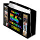 This upbeat and eye-catching birthday gift bag design features the message “HAPPY 54TH BIRTHDAY,“ with the text having a multicolored rainbow spectrum inspired gradient pattern, along with a custom recipient name. The photos to the left and the right of the rainbow-patterned message on the front of the card can be personalised, perhaps with photos of the recipient, the recipient’s family and friends, and/or the sender(s) of the gift. A eye-catching birthday themed giftbag like this might be a fun way to wrap a gift being given to somebody who is celebrating their fifty-fourth birthday. (Photography © Storytree Studios, Stanford, CA.) [~Z0000668]