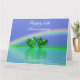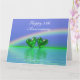 "Happy 55th anniversary" card with emerald hearts floating on the water under a rainbow, and customisable verse inside.