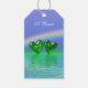 Gift tags with my original image of two emerald green hearts floating on the water under a rainbow. Text says "55 Years" on the front and "To, From" on the back.