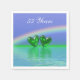 These paper napkins will be a useful and attractive addition to your Anniversary event with my surreal image of 2 emerald green hearts floating on the water under a rainbow. Text says "55 Years".