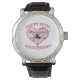 I had two concerns when ordering this watch - one that the watchband didn't look that glittery and two that the dial would be too large. Neither was a problem at all. The watch band is nice and glittery for a touch of bling. As to the size, I have small bones so I tend to like smaller looking accessories and I am quite comfortable with this. Neither too large or too small. The outside edge to edge on the dial is 1 1/4" the inside image is 1 inch.