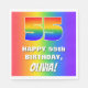 This vibrant and cheerful birthday themed paper napkin design features a large number “55” with a colourful rainbow spectrum inspired gradient pattern, along with the message “HAPPY 55th BIRTHDAY,”, and a personalised recipient name. The background also features a fun multicolored rainbow spectrum inspired gradient pattern. Birthday themed paper napkins like this might be used at a party celebrating somebody’s fifty fifth birthday. [~Z0000573]