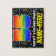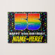 This vibrant and fun birthday jigsaw puzzle design features a large number “55” with a multicolored rainbow spectrum inspired gradient pattern, along with the message “HAPPY 55th BIRTHDAY,”, and a customisable recipient name. The background features a joyful, multicolored star field pattern. An eye-catching, editable birthday puzzle like this might be used to celebrate somebody’s fifty-fifth birthday. [~Z0000607]