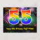 55th Birthday – Fun Fireworks Pattern + Rainbow 55 Postcard
