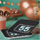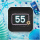 Glowing neon marquee sign with a star on a dark brick city wall for 55th birthday party