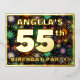 The front of this joyful and eye-catching fifty-fifth birthday celebration/party foil invitation postcard design features a custom name, a large number “55th”, the message “BIRTHDAY PARTY!”, and a border. The background of the front features an upbeat, colourful bursting celebratory fireworks-inspired pattern. The back features personalised details about the event, such as the date, time, place, and any other important information. Editable invitations like these might be a fun way to invite guests to a birthday party being held in celebration of somebody’s 55th birthday. [~Z0000609]