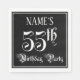 This elegant and opulent birthday-themed paper napkin design features a personalised name and the message “55th Birthday Party”. The large number “55th” and the words “Birthday Party” are in luxurious script-style text, and the background is coloured black by default (although it can be customised). Elaborate, ornate paper napkins like this might be used at a birthday celebration being held in celebration of somebody’s 55th birthday. [~Z0000563]