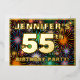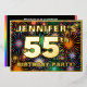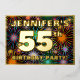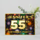 The front of this vibrant and upbeat fifty-fifth birthday celebration/party foil invitation card design features a custom name, a large number “55th”, the message “BIRTHDAY PARTY!”, and a border. The background of the front has a bold, multicolored bursting celebratory fireworks-inspired pattern. The back features personalised details about the event, such as the date, time, location, and any other important information. Customised invitations like these might be a fun way to invite attendees to a birthday party being held to celebrate somebody’s 55th birthday. [~Z0000602]