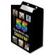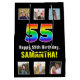 This eye-catching and bold birthday-themed gift bag design features a large number “55“ having a multicolored rainbow spectrum inspired gradient pattern, along with the message “Happy 55th Birthday,“ and a custom recipient name. The photos above and below the message can be personalised, perhaps with photos of the recipient, the recipient’s family and friends, and/or the sender(s) of the gift. A upbeat giftbag like this might be used when giving a gift or present in honour of somebody’s fifty-fifth birthday. (Photography © Storytree Studios, Stanford, CA.) [~Z0000669]