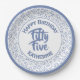 55th Cool Random Number Pattern Blue/White Paper Plate
