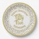 55th Cool Random Number Pattern Gold/White Paper Plate