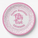55th Cool Random Number Pattern Pink/White Paper Plate