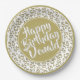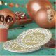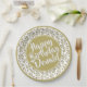 This over-the-hill design has a gold and white random number pattern with a gold milestone number 55 repeated in varied sizes and angles. There is a gold circle in the centre for your text and gold and white rings around the rim.