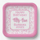 This unique numeric design features a pink and white random number pattern with the pink milestone number 55 displayed in various sizes and angles. A white rounded square serves as the centre for your text, surrounded by a pink and white frame.