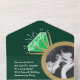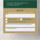 This fifty-five-year wedding anniversary party event invitation has a detachable RSVP so it can be sealed, so no envelope is required. An emerald bright green gemstone and gold ring graphic wedding anniversary invitations, personalise with your own wedding anniversary party details and reply with dancing music requests. Make it easy for you and your guests to send as no envelope is required simply handwrite on your sealed invitations and your guests can reply with the detachable rsvp for quick and easy guest meal responses. Ideal for a fun 55th-anniversary party. The 55th wedding anniversary is associated with the precious gemstone emerald. Other matching items and anniversary years are available. Graphics and design by Sarah Trett for www.mylittleeden.com and www.mylittleedenweddings.com