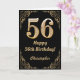 56th Birthday Black and Gold Glitter Frame. For further customisation, please click the "Customise it" button and use our design tool to modify this template.