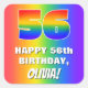 This vibrant and exciting birthday square sticker design features a large number “56” having a colourful rainbow spectrum inspired gradient pattern. It also features the message “HAPPY 56th BIRTHDAY,”, and an editable recipient name. The background also features a fun multicolored rainbow spectrum inspired gradient pattern. Fun, personalised stickers like this might be given as a birthday gift, or used while wrapping gifts/presents, or perhaps used as birthday party decorations when celebrating somebody’s 56th birthday. [~Z0000571]
