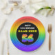 56th Birthday: Colourful Rainbow # 56, Custom Name Paper Plate