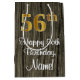 This sophisticated, stylish, and luxurious birthday themed gift bag design features a large ordinal number “56th” having a faux/imitation gold-like gradient pattern, in addition to the birthday greeting message “Happy 56th Birthday,” and a customisable recipient name in a script-style font. The background has a faux wood-inspired pattern. A birthday themed gift bag like this might be a fun way to wrap a gift or present being given to somebody who is celebrating their fifty sixth birthday. [~Z0000520]