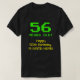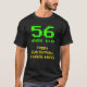 This nerdy and silly shirt design has the message "56 YEARS OLD!", the birthday greeting message "Happy 56th Birthday,", and an editable name. The upper age digits and text have a geeky, green, pixelated, 8-bit graphics style appearance inspired by that of 8-bit video games and 80s era computer games. The lower greeting message features a nerdy, yellow, classic digital computing inspired look. Shirts like this might be worn by the guests of a birthday party held in celebration of the fifty-sixth birthday of somebody who enjoys classic video games or vintage computers. [~Z0000455]