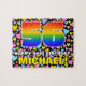 This colourful and bold birthday themed jigsaw puzzle design features a large number “56” having a multicolored rainbow spectrum inspired gradient pattern. It also features the message “HAPPY 56th BIRTHDAY,”, and a custom recipient name. The background has an upbeat pattern of hearts having various sizes and colours. A vibrant, editable birthday puzzle like this might be a fun way to deliver birthday greetings to somebody who is celebrating their fifty-sixth birthday. [~Z0000611]