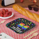 This exciting and colorful birthday themed paper plate design features a large number “56” with a rainbow spectrum gradient inspired pattern, along with the message “Happy 56th Birthday,”, and a personalized name. The background features an exciting and colorful pattern having many star shapes with different sizes and colors. Cheerful birthday themed paper plates like this might be used at a birthday party in celebration of somebody’s fifty sixth birthday. [~Z0000582]