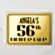 The front of this stylish fifty-sixth birthday celebration foil invitation card design features an editable name, an art deco style inspired number “56th”, the message “BIRTHDAY PARTY”, and a border pattern consisting of lines. The back features personalised details about the event, such as the place/venue, date, time, and any other information that may be important. Luxurious, stylish, customisable invitations like these might be used to invite attendees to a birthday gathering being held to honour somebody’s 56th birthday. [~Z0000606]