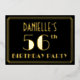 The front of this Roaring Twenties inspired and vintage-appearance fifty-sixth birthday celebration foil invitation features an editable name, a large art deco style inspired number “56th”, the message “BIRTHDAY PARTY”, and a border pattern consisting of lines. The front also has a black-coloured background by default, but it can be customised to a different colour if desired. The back features personalised details about the event, such as the date, time, venue, and any other information that may be important. Elegant, luxurious, editable invitations like these might be used to invite guests to a birthday party being held to celebrate somebody’s 56th birthday. [~Z0000591]