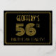 The front of this Roaring Twenties inspired fifty-sixth birthday party foil invitation features a personalised name, a large art deco style inspired number “56TH”, the message “BIRTHDAY PARTY!”, and a border pattern consisting of lines. The front also has a black-coloured background by default, but it can be customised to a different colour if desired. The back features personalised details about the event, such as the date, time, location, and any other relevant information. Elegant, luxurious, personalised invitations like these might be used to invite guests to a birthday party/celebration being held in celebration of somebody’s 56th birthday. [~Z0000590]