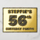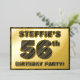 The front of this bold fifty-sixth birthday party foil invitation card features a customisable name, a large number “56th”, the message “BIRTHDAY PARTY!”, and a border, all featuring a rustic, yet sophisticated, faux wood grain appearance inspired pattern. The back features personalised details about the event, such as the date, time, venue/place, and any other relevant information. Editable invitations like these might be used to invite guests/attendees to a birthday gathering being held in celebration of somebody’s 56th birthday. [~Z0000595]