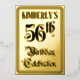 The front of this fancy fifty-sixth birthday party foil invitation/announcement card design features the message “56th Birthday Celebration” in opulent script-style text. It also has a personalised name. The back features personalised details about the event, such as the date, time, venue/place, and any other information that may be useful. Elaborate, luxurious, customised invitations like these might be used to invite guests to a birthday celebration being held in celebration of somebody’s 56th birthday. [~Z0000596]