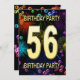 Add a name to customise this unique party invitation. 56th birthday party invitation with fireworks and bubbles. Add your details inside to create a perfect fun invite. Light up the sky with these glorious fireworks. An invitation to a birthday party that has style and loads of fun.