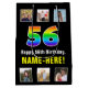 This upbeat and fun birthday-themed gift bag design features a large number “56“ having a vibrant rainbow spectrum inspired gradient pattern, along with the message “Happy 56th Birthday,“ and a custom recipient name. The photos above and below the message can be personalised, perhaps with photos of the recipient, the recipient’s family and friends, and/or the sender(s) of the gift. A gift bag like this might be a fun way of wrapping a birthday gift or present being given to somebody who is celebrating their fifty-sixth birthday. (Photography © Storytree Studios, Stanford, CA.) [~Z0000669]