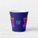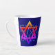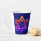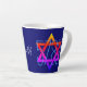 Colourful Jewish New Year Monogram Latte Mug with 5782 (Hebrew year corresponding to 2022). The design shows a vibrant coloured Star of David (Magen David) with a CUSTOMIZABLE 5782, so you can change it for ANY YEAR (or delete it) - all set against a dark blue backdrop. The design is repeated on the back and in the middle there is a CUSTOMIZABLE MONOGRAM. This would make a great gift to celebrate Rosh Hashanah. Choose from a wide selection of Jewish-themed clothing, cards, home decor, party supplies and gifts designed by Berean Designs.
