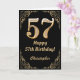 57th Birthday Black and Gold Glitter Frame Card