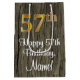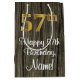 This luxurious, stylish, and sophisticated birthday gift bag design features a large ordinal number “57th” having a faux/imitation gold-inspired appearance, in addition to the birthday greeting message “Happy 57th Birthday,” and a custom recipient name in a script-style font. It also has a faux wood-inspired background pattern. A gift-bag like this might be used when giving a gift or present in honour of somebody’s fifty seventh birthday. [~Z0000520]